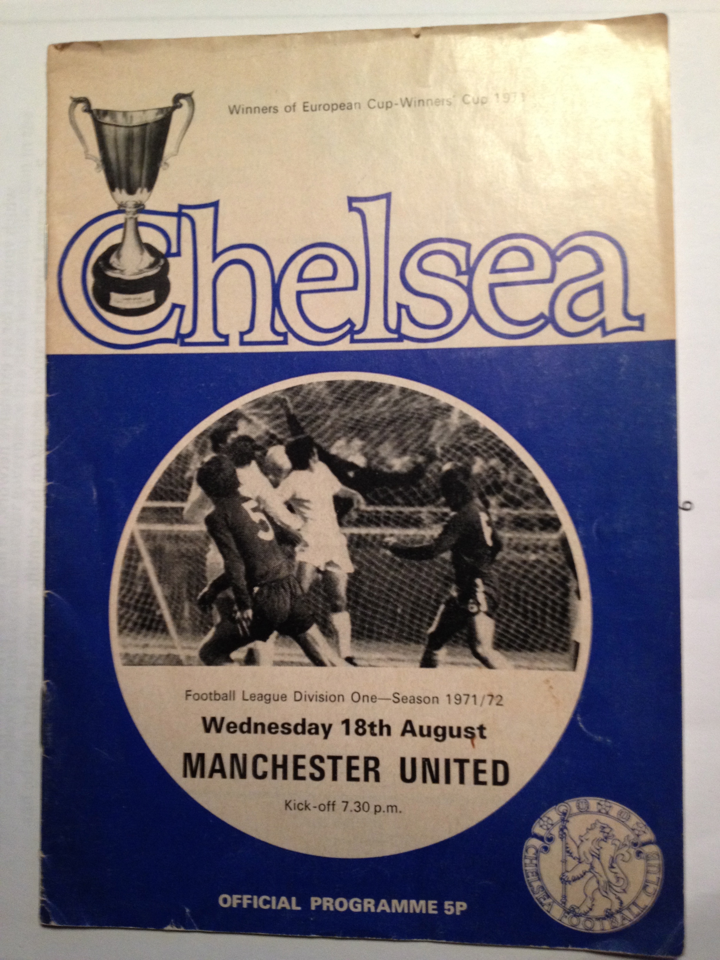Den 18 augusti 1971 satt jag på en läktare på Stamford Bridge tillsammans med 54 000 andra och såg Manchester United slå Chelsea med 3-2 (matchprogrammet som kostade 5 pence till höger).