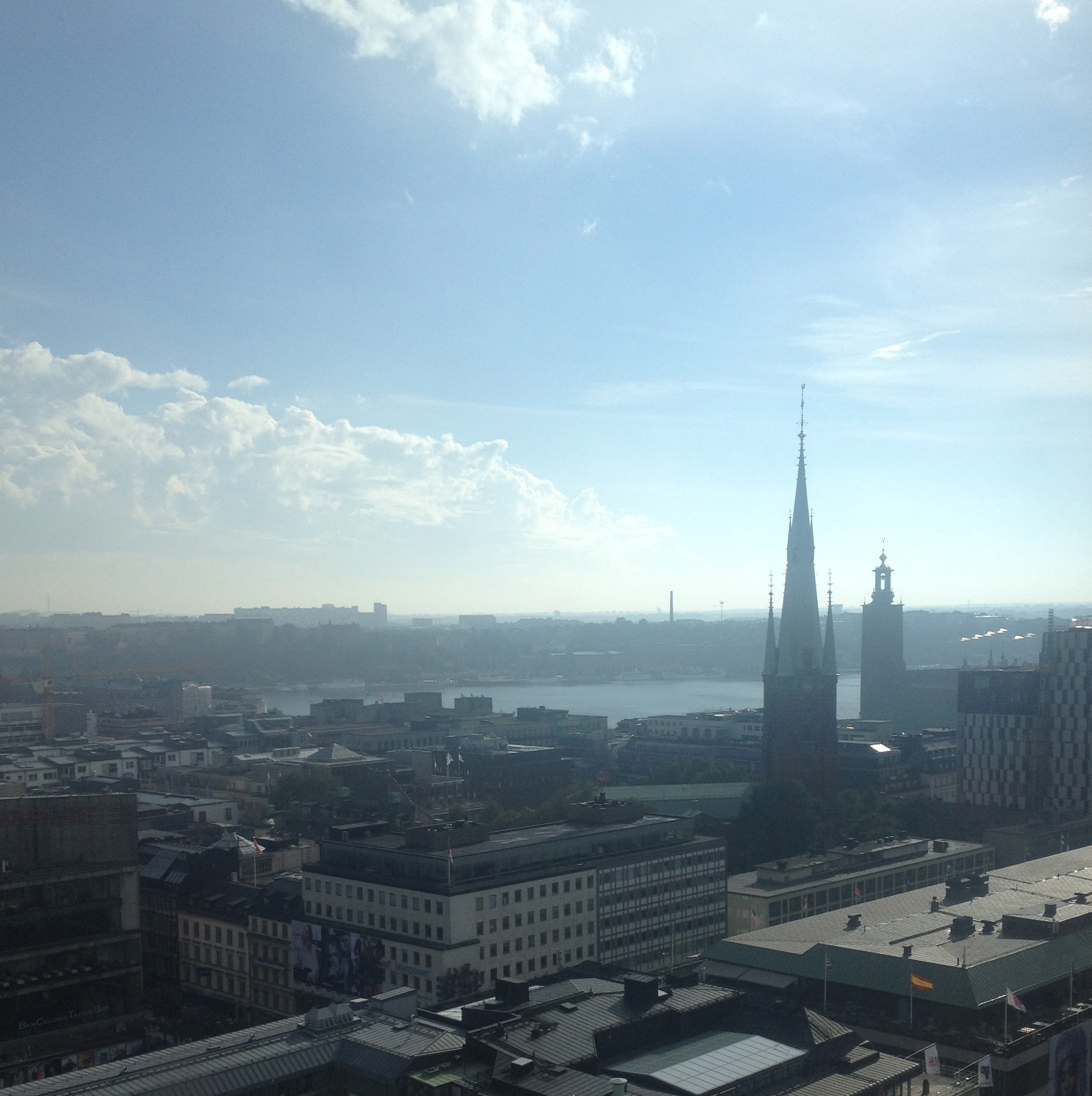 Fin utsikt idag från ett av Hötorgshusen. Sent på eftermiddagen började också solen lysa över Stadshuset och Klara kyrka.