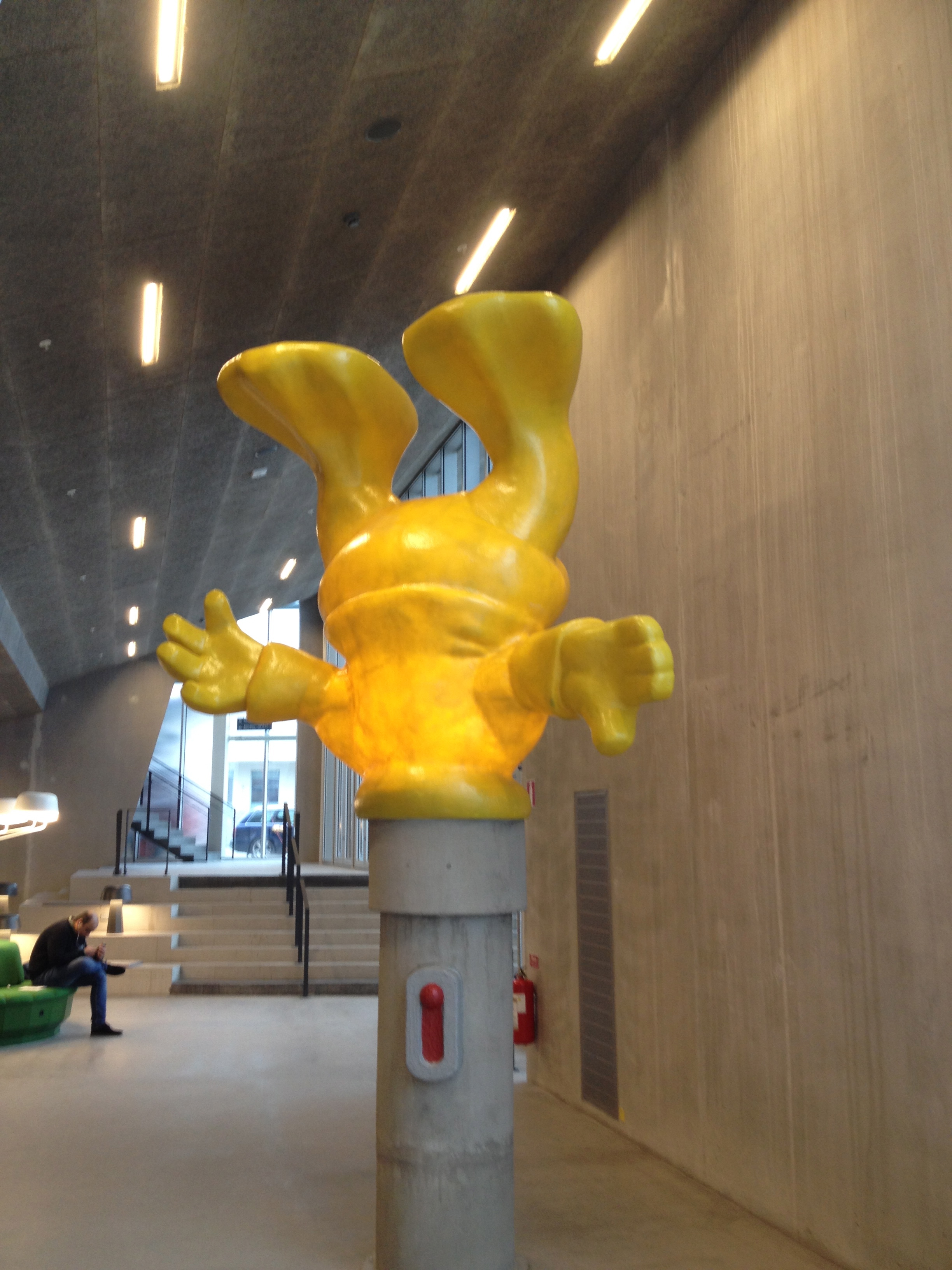 I Handelshögskolans nybyggda Nova-hus därstädes finns ett konstverk i form av en anka (bilden). Joakim von Anka upp-och-ner-vänd, antar jag. Konstverket heter Ankeborg (Lena Flodman är konstnär).