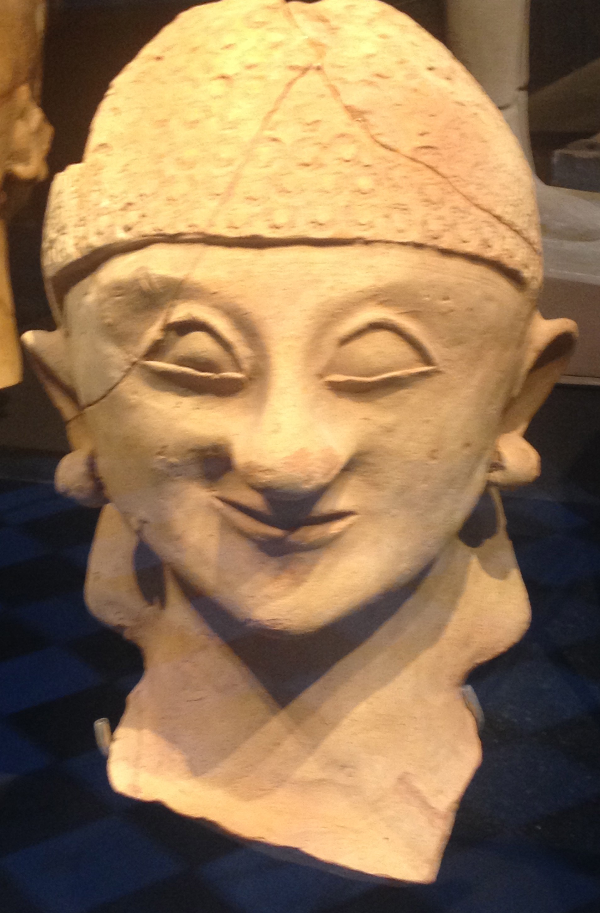 Huvudet till vänster är en krigare från 650-500 f Kr, från utgrävningarna i Aija Irini.