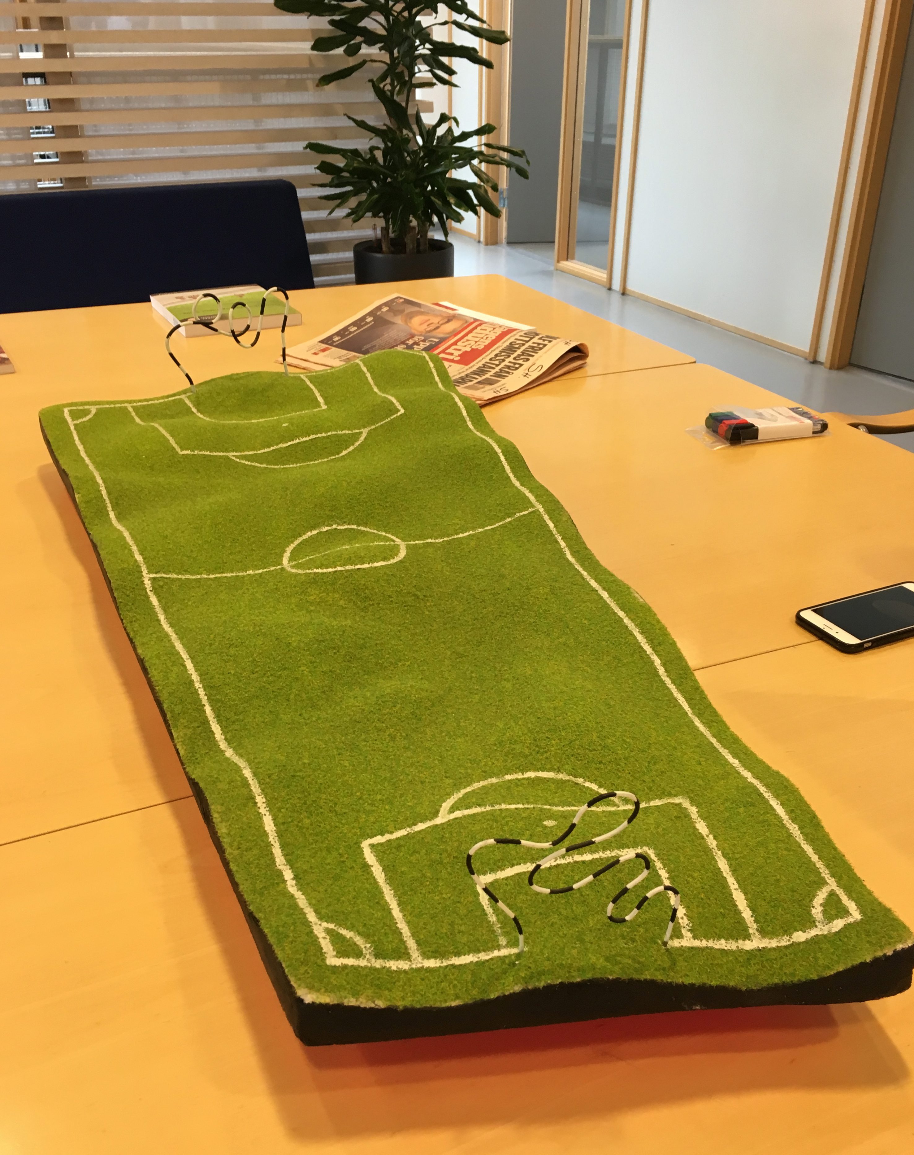 Det stod en modell av en lite udda fotbollsplan utanför mitt kontor i veckan.