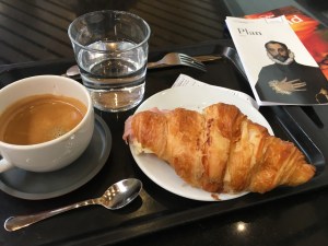 Efter att ha sett de 15-16 utvalda målningarna (det tog väl en timme ungefär) blev det kaffe och croissant i caféet, och sedan lite ”fritt tittande”.