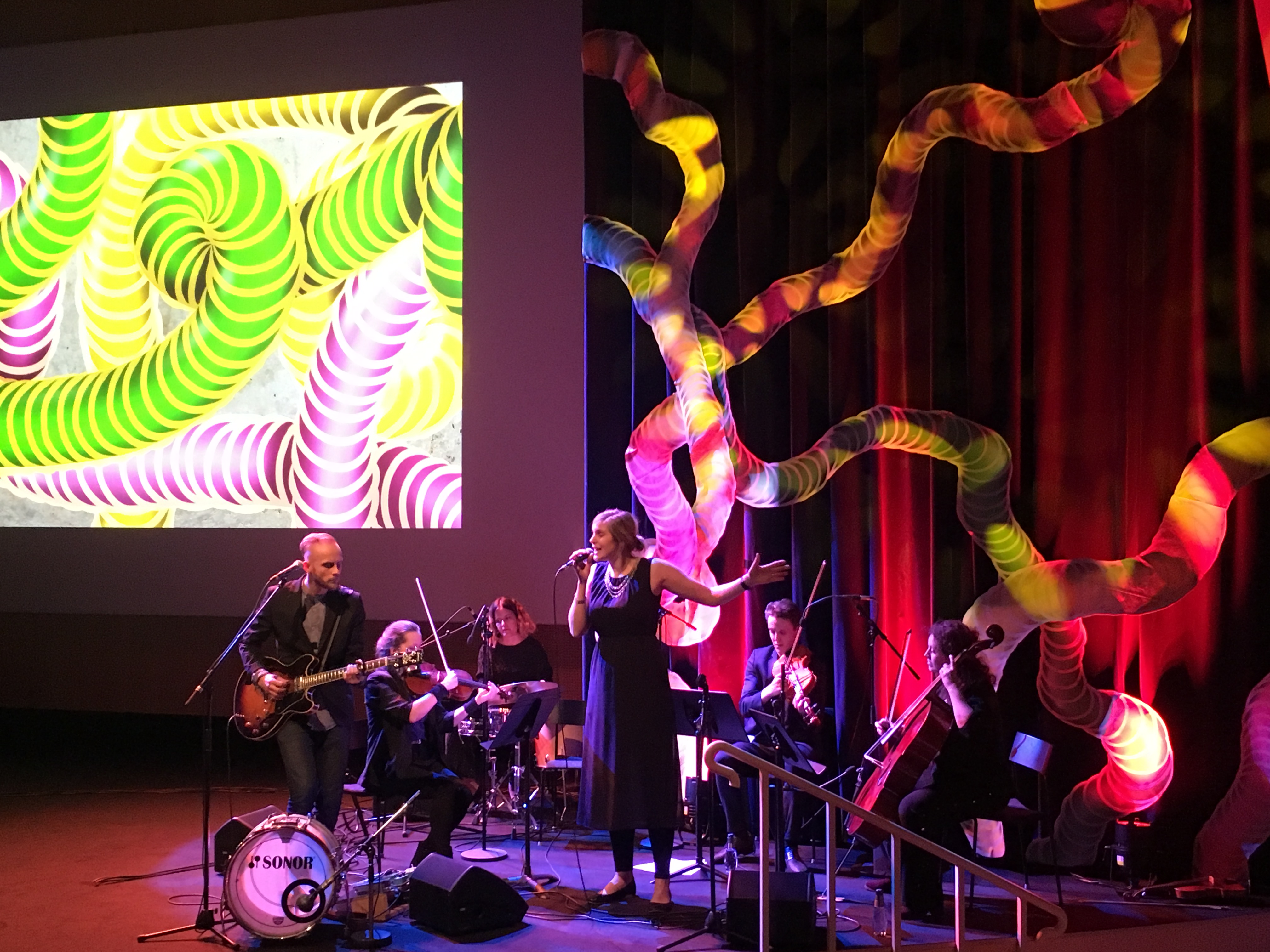 De rottrådar (jag tyckte att det såg ut som DNA-kedjor) som syns bakom musikerna på bilden är skapade av gatu- och grafittikonstnären Shora Dehnavi.