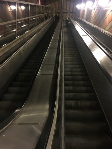 Han jobbade tydligen som sköterska på Karolinska Sjukhuset i Flemingsberg (jag kallar det fortfarande Huddinge Sjukhus) och lärde känna de där rulltrapporna.