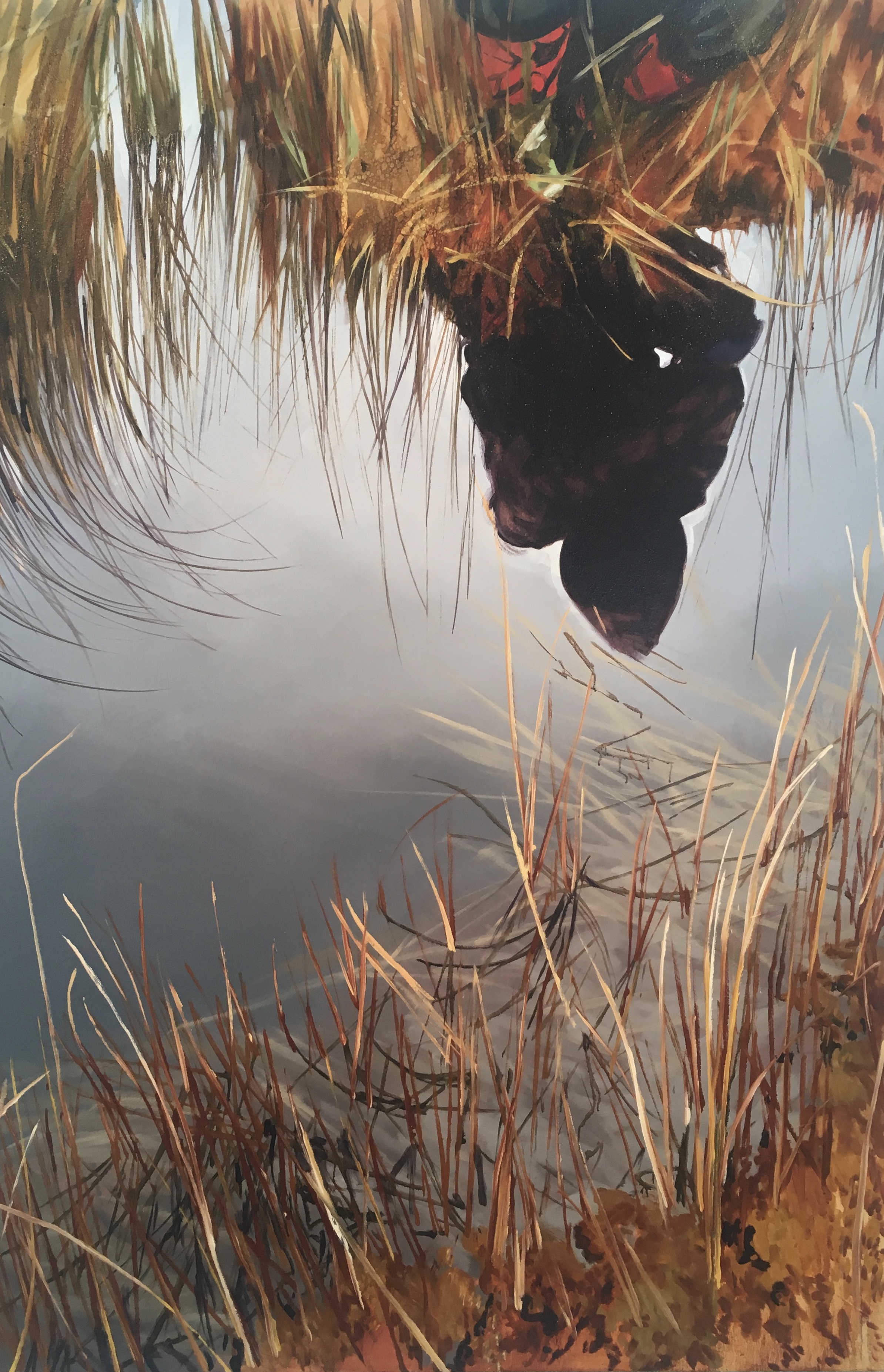 Ericson målar lite i Karin Broos anda. Motiven till de nya målningarna är hämtade från den hälsingska våtmarken.