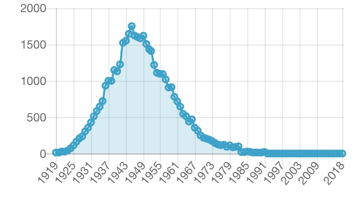 Såhär ser de flesta ”namnkurvor” ut. Kanske andra kurvor också … för visst ser kurvan ungefär också ut som kurvorna över Covid 19-dödsfall i olika länder.