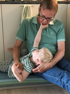 Att vara morfar är stort. Olof är en glad och kvick 2-åring som gillar en massa grejer: att spela boll, bygga tågbanor, leka med mästerflygarna och att låtsas vara ett spöke.