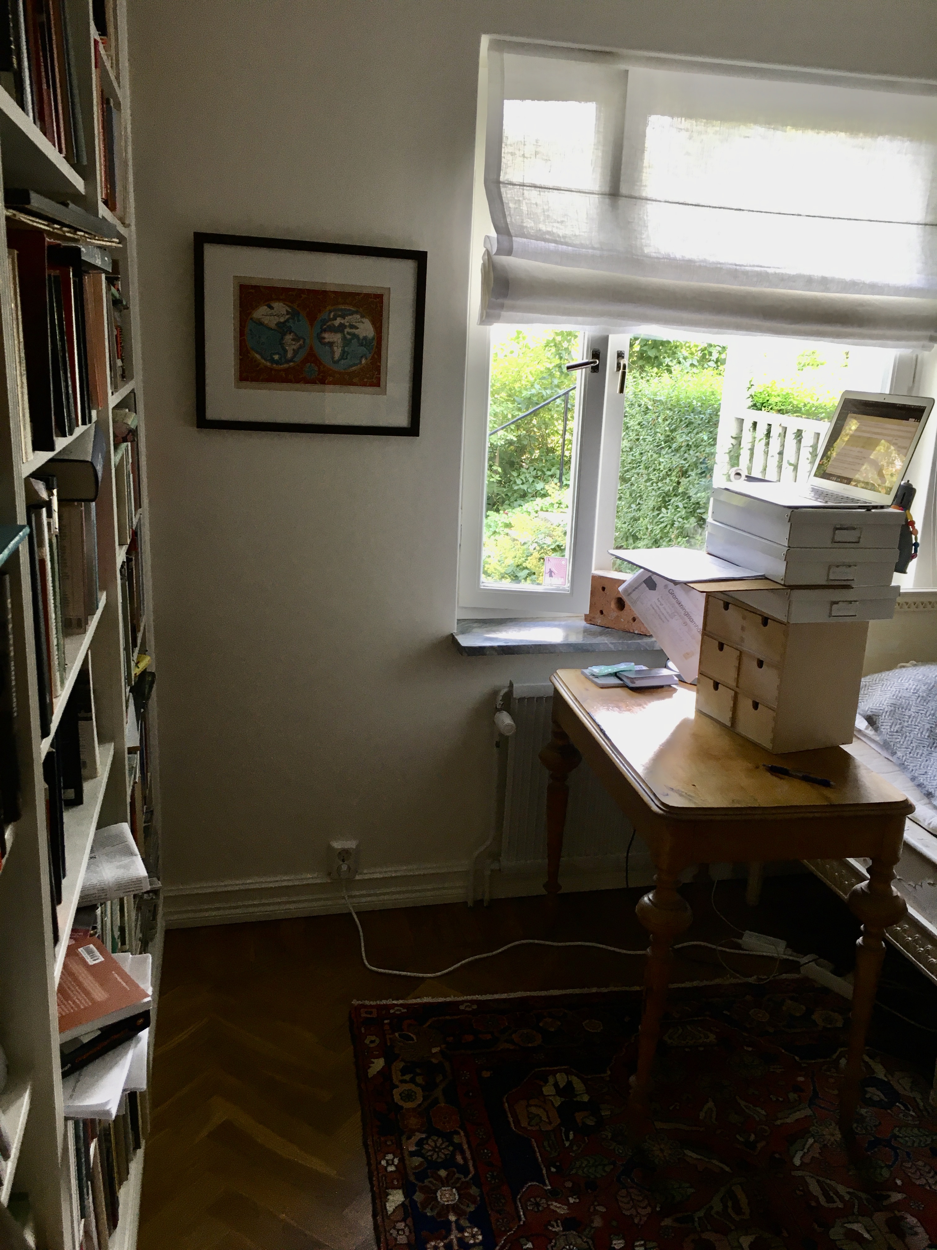 Jag spelade – i min påtagligt provisoriska hemmastudio – (bilden) in en föreläsning. Den ingår i en uppdragsutbildning för rektorer och föreläsningen handlade om granskningssamhället.