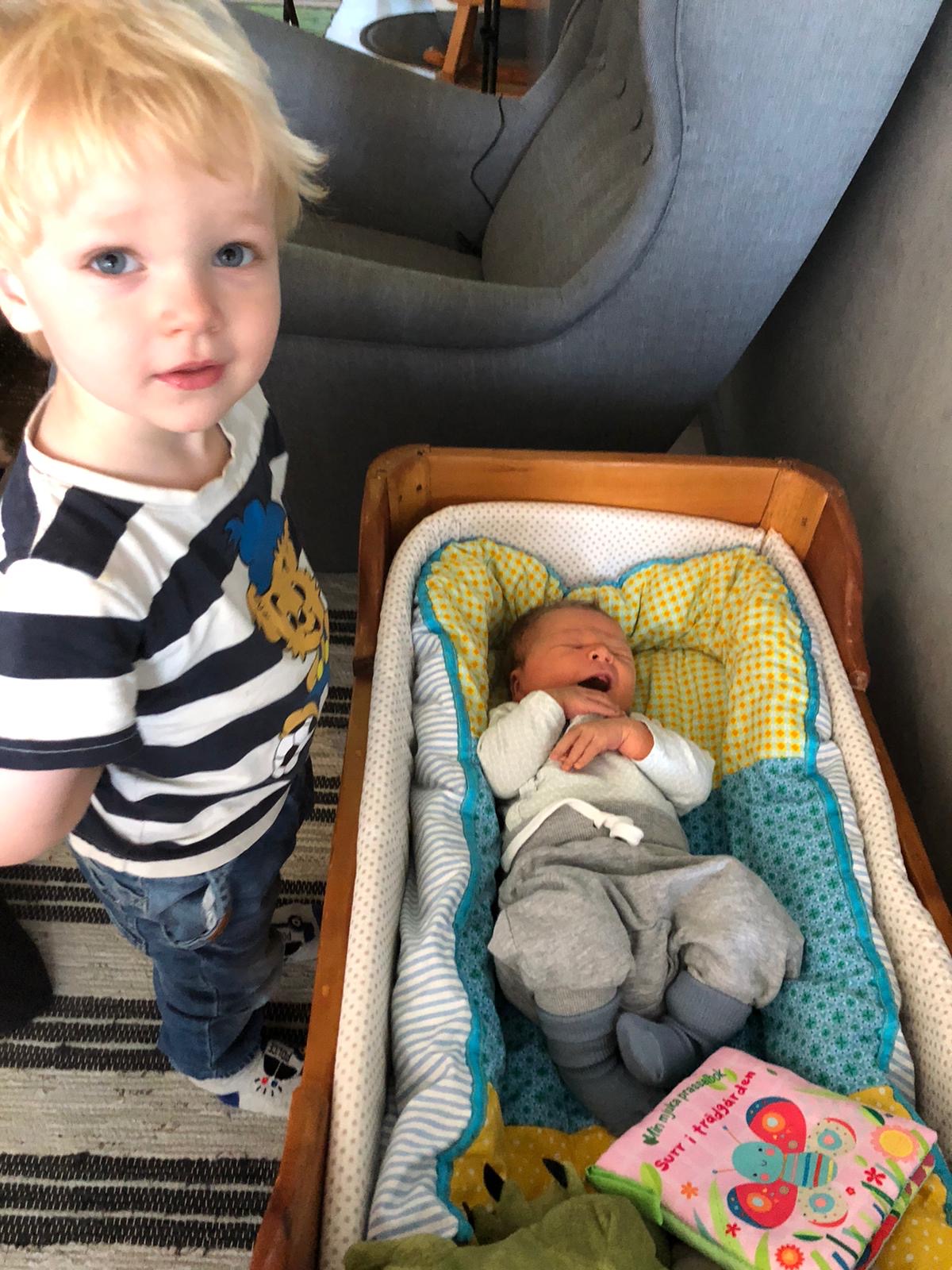 Nu är dom hemma igen. Familjen återsamlad. Olof har fått träffa sin nye lillebror. Som för resten inte är någon liten knatte. Han vägde 4.7 kilo.