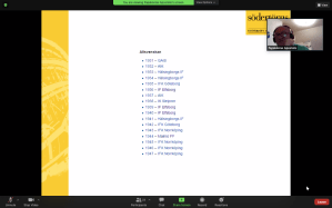 Allt sker digitalt, vilket förstås är lite synd. Men det har det goda med sig att deltagarna inte behöver ta sig till Campus Flemingsberg, utan kan sitta hemma i sina favoritfåtöljer.
