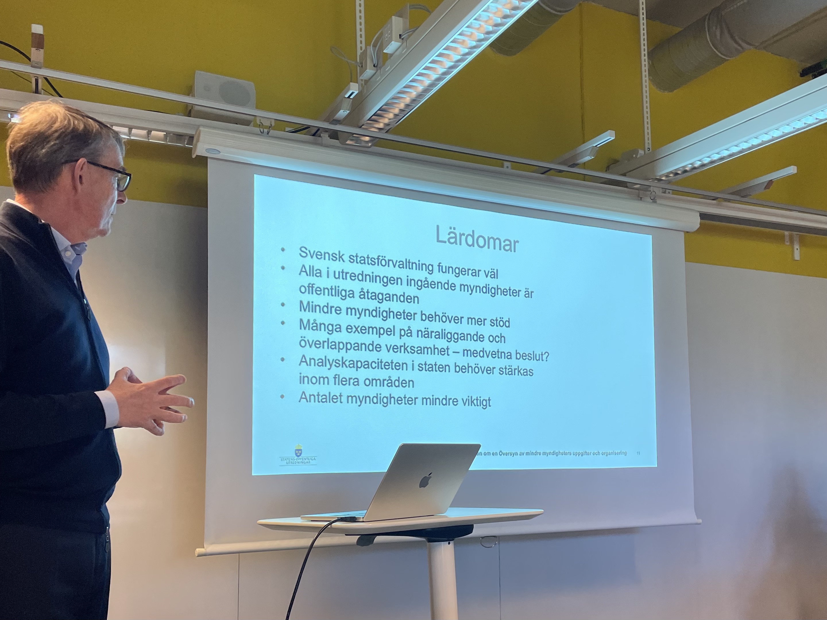Bengtsson avslutade seminaret med några lärdomar (bilden ovan), där den avslutande var att antalet myndigheter är mindre viktigt.
